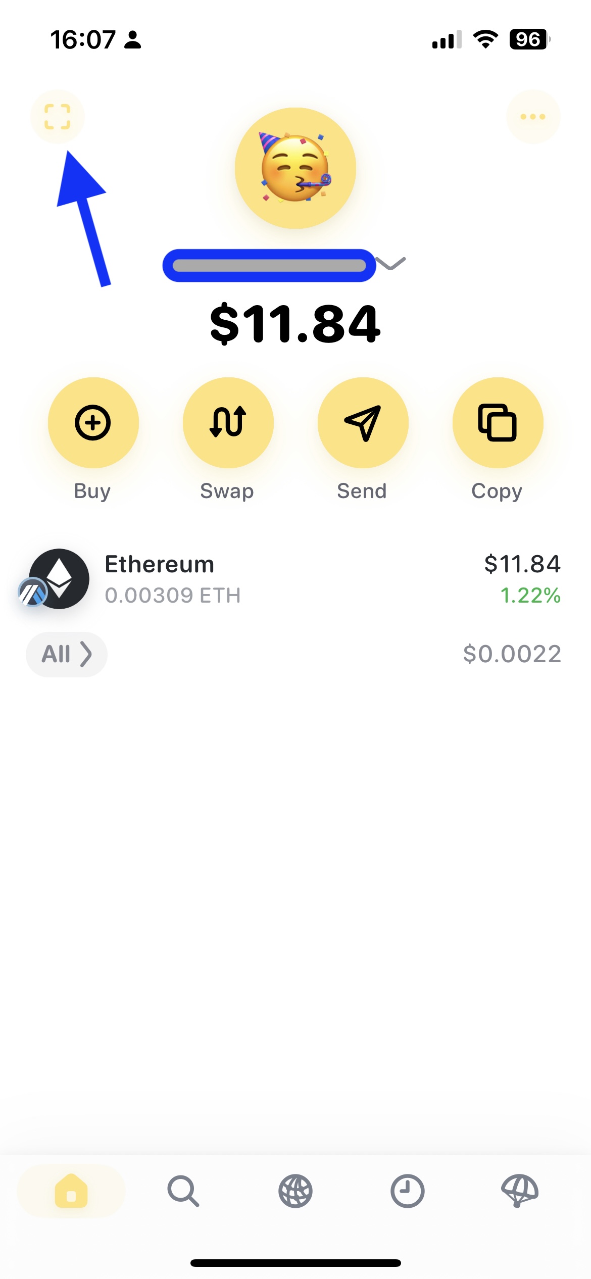 Open your mobile wallet and scan the QR code with that wallet in order to connect with it.
