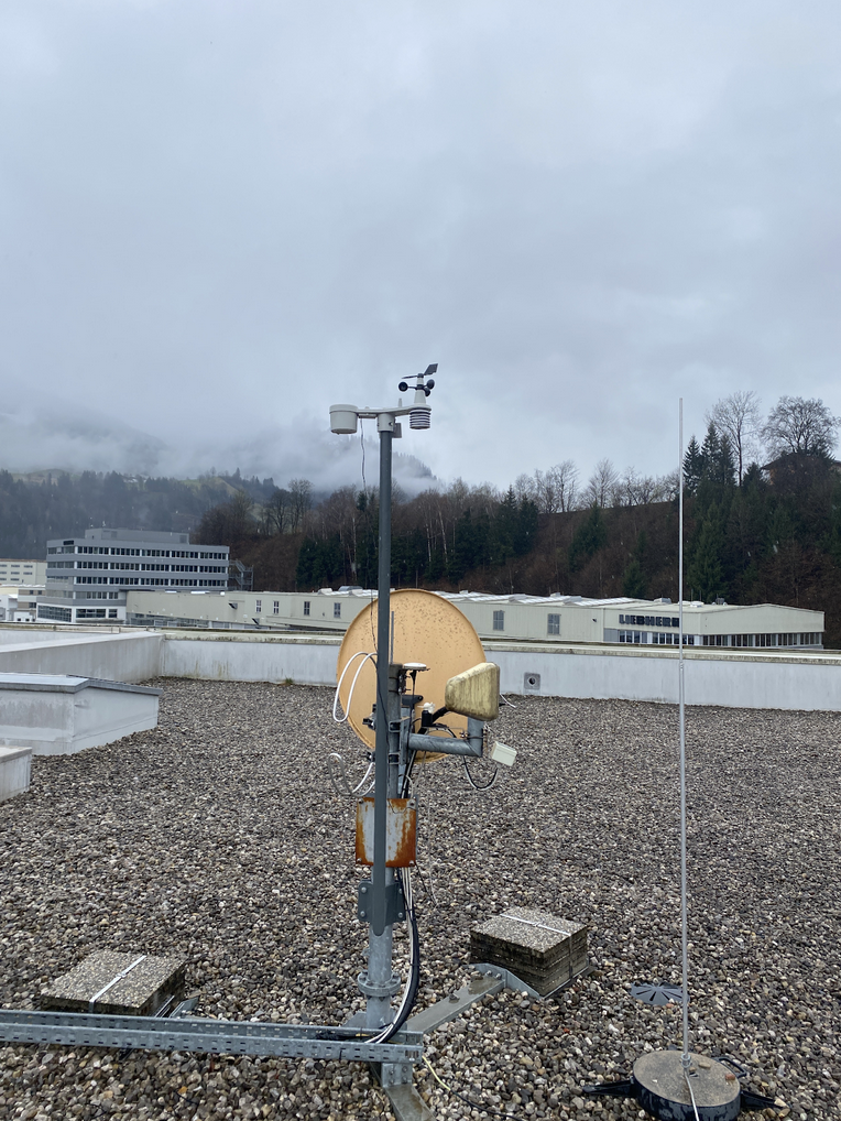 - The mast is much lower than the recommended height, and the temperature measurements are certainly affected by the dark-coloured roof.